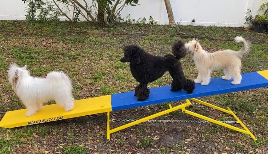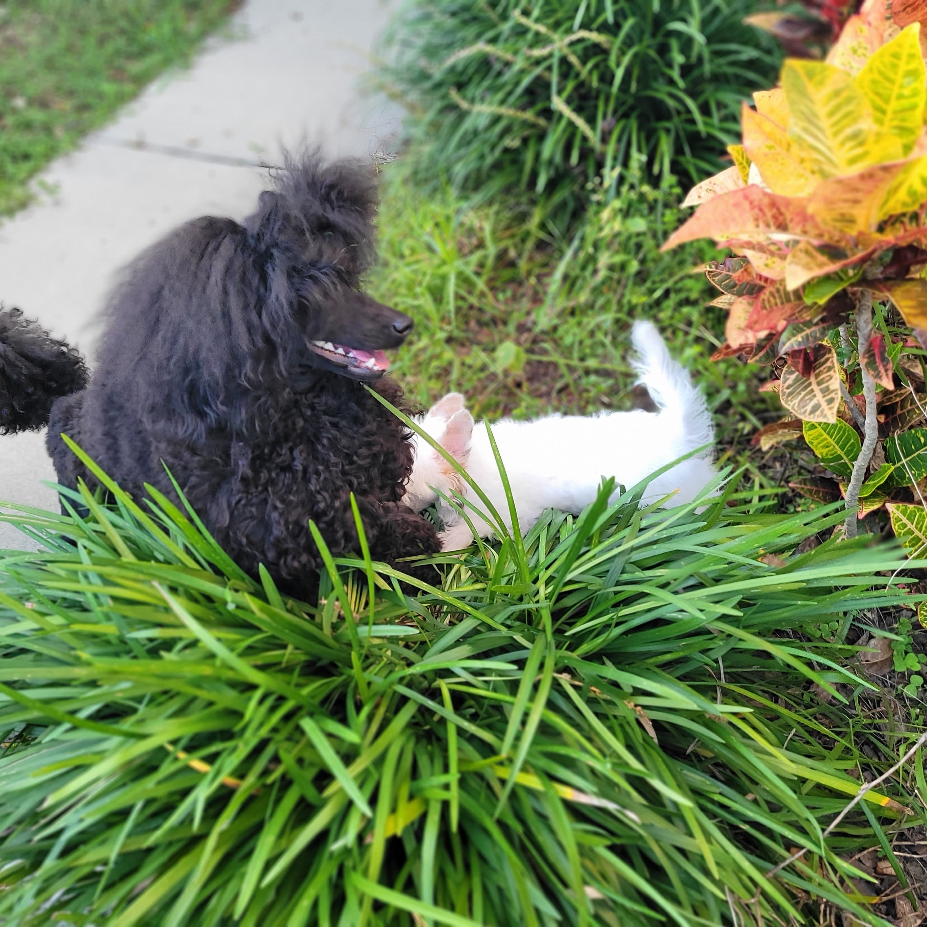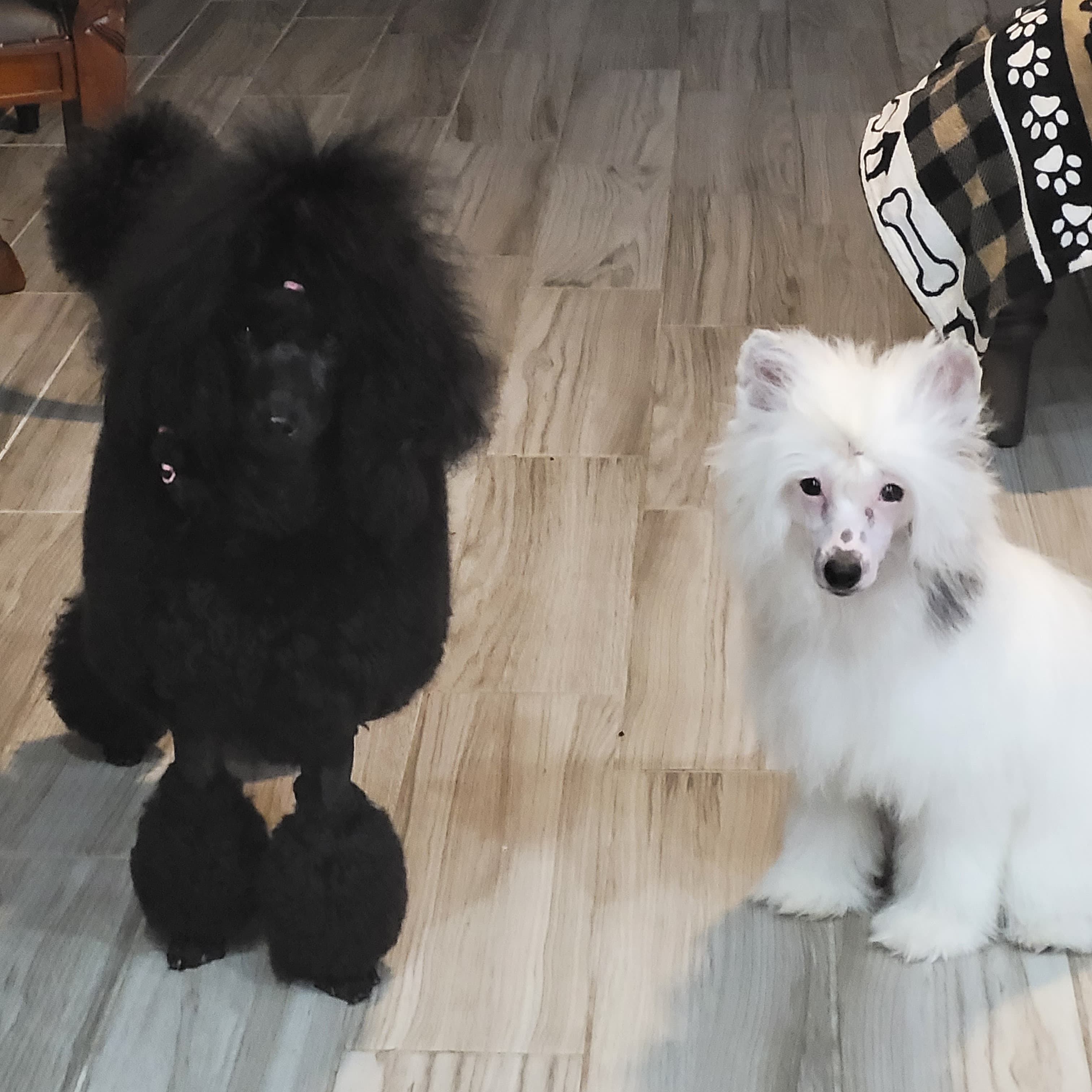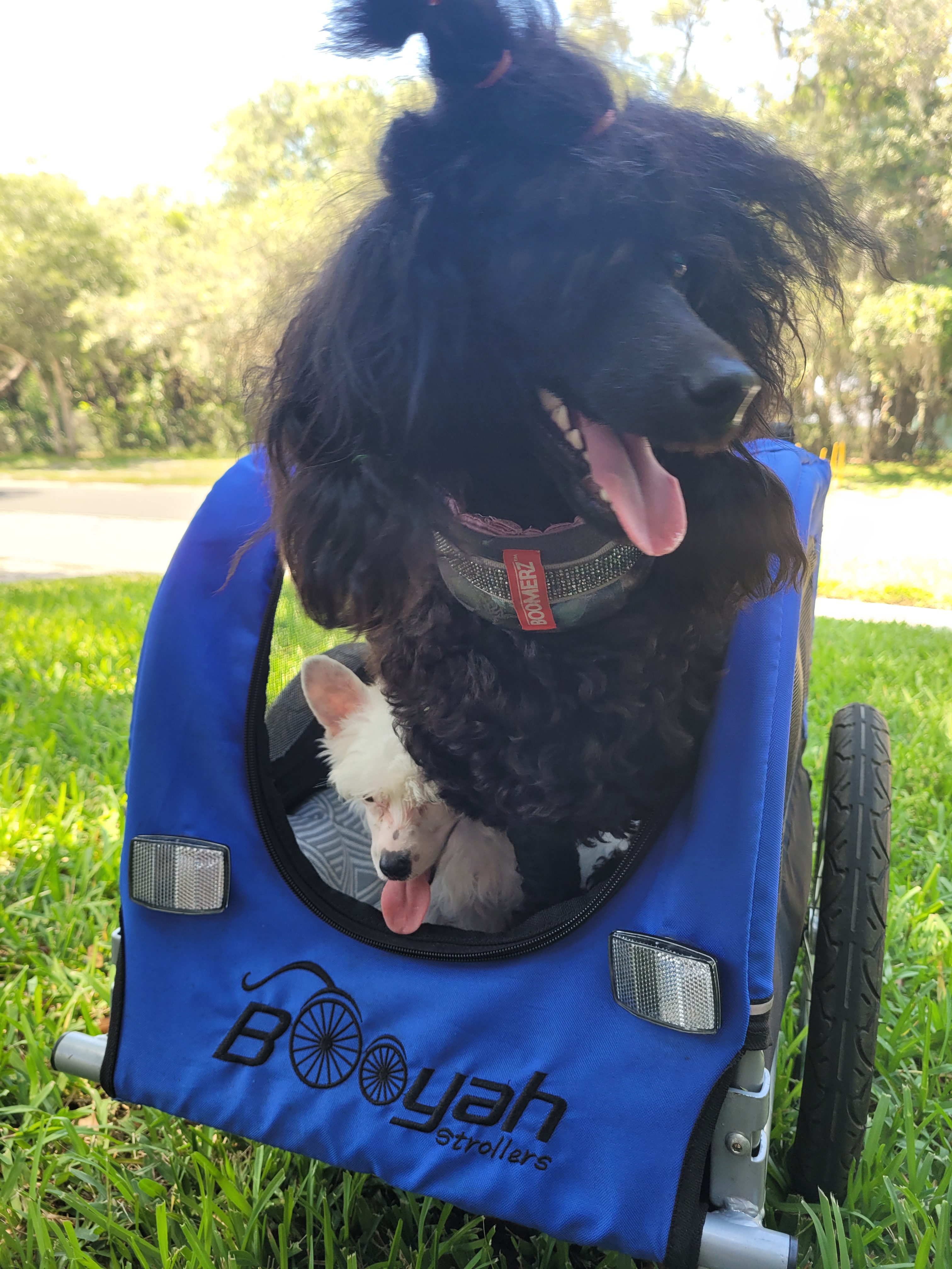 Midnight is the queen at our house. She is the first one to greet everyone at the door. Loves her toys, especially her ball 🙂 My husband and her are inseparable, and are currently competing in agility now that she has completed her conformation Championship, and is now competing in Excellent Agility class after only being out for 6 weeks!. She is also a full sister to the #1 Agility poodle “Kyze”.