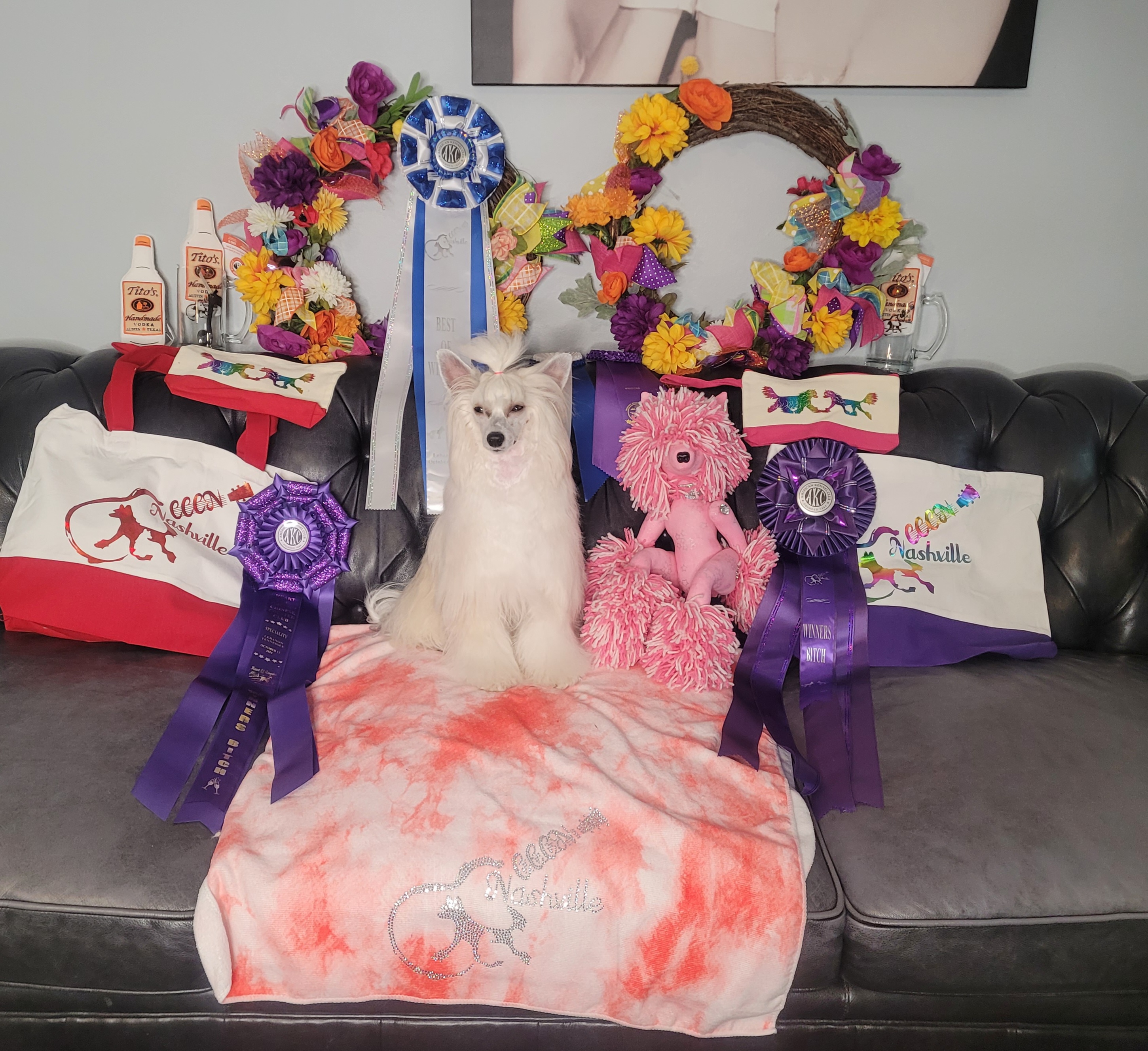 Monroe is the baby of our pack. Finishing quickly with 4 MAJORS (3, 5, 5, & 5 points). Monroe will next now go on to earn her Grand Championship. Monroe, like her name, is beautiful and quiet, but a fireball when she wants to play. She is notorious for just coming up and then patting you with her front paws saying “Hey, I am ready for your attention now!”